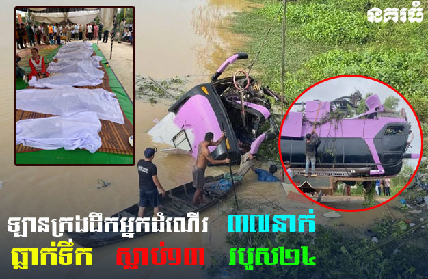 ខេត្តកំពង់ធំ ៖ រថយន្តក្រុងដឹកអ្នកដំណើរពេលយប់ ១គ្រឿង ផ្ទុកអ្នកដំណើរក្មេងចាស់ប្រុសស្រី សរុបចំនួន៣៧ នាក់ កំពុងបើកបរនៅលើដងផ្លូវសុខៗ ស្រាប់តែអ្នកបើកបរងងុយដេក ងោក១ភាំង ធ្វើឱ្យរថយន្តរេចង្កូតទៅបុក បង្កាន់ដៃស្ពាន រួចក្រឡាប់ធ្លាក់ចូលទឹក ទាំងកំរោល បណ្តាលឱ្យអ្នកដំណើរ ចំនួន១៣នាក់ បានស្លាប់នៅនឹងកន្លែង ចំណែក២៤នាក់ផ្សេងទៀត បានរងរបួសធ្ងន់-ស្រាល និងត្រូវបានដឹកបញ្ជូនទៅសង្គ្រោះនៅមន្ទីរពេទ្យភ្លាមៗ។