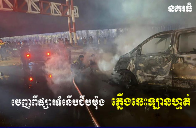 ភ្នំពេញ ៖ ក្រុមគ្រួសារមួយ ទើបនឹងត្រឡប់មកពីបើកថ្នាំ ឱ្យកូន នៅមន្ទីរពេទ្យ ឆៀងចូលលេងផ្សារទំនើប រួចបើករថយន្តត្រឡប់ទៅផ្ទះ ស្រាប់តែរថយន្តបានឆ្លងភ្លើង ធ្វើឱ្យកើតមានអគ្គិភ័យឆាបឆេះរថយន្តយ៉ាងសន្ធោ សន្ធៅ បណ្តាលឱ្យខូចខាតអស់ទាំងស្រុង។