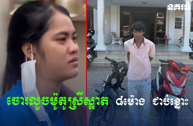 ភ្នំពេញ ៖ នារីរូបស្រស់ម្នាក់ បានជិះម៉ូតូ ១គ្រឿង ទៅផ្ទះមិត្តភក្តិ បំណងខ្ចីលុយ ១០០ដុល្លារ យកមកបង់ថ្លៃជួលផ្ទះ លុះទៅដល់ ទុកម៉ូតូនៅច្រកផ្លូវមុខផ្ទះ ហើយចូលទៅអង្គុយនិយាយគ្នាលេងមួយសន្ទុះ ស្រាប់តែត្រូវជន សង្ស័យ ២នាក់ ធ្វើសកម្មភាពលួចម៉ូតូបាត់ ធ្វើឱ្យកើតមានការភ្ញាក់ផ្អើល និងប្តឹងសុំអន្តរាគមន៍ពីសមត្ថកិច្ច ស្រាវជ្រាវអស់រយៈពេលប្រមាណជាង ៨ម៉ោង ក៏ឈានដល់ការឃាត់ខ្លួនជនសង្ស័យ បានម្នាក់ នាំយកមកចាត់ការតាមច្បាប់។