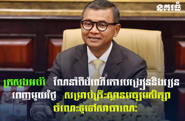 ភ្នំពេញ ៖ ក្រសួងអប់រំ យុវជននិងកីឡា នៅថ្ងៃទី២៥ ខែវិច្ឆិកា ឆ្នាំ២០២៥ បានផ្សព្វផ្សាយសេចក្តីណែនាំលេខ ៥២ អយក.សណន ចុះថ្ងៃទី២៥ ខែវិច្ឆិកា ឆ្នាំ២០២៥ ស្តីពីដំណើរការបង្រៀននិងរៀនពេញមួយថ្ងៃ សម្រាប់គ្រឹះស្ថានមធ្យមសិក្សាចំណេះទូទៅសាធារណៈ។