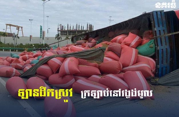ភ្នំពេញ ៖ រថយន្តប្រភេទយីឌុប ដឹកស្រូវ ១គ្រឿង បានបើកបរក្នុងល្បឿនលឿន លុះដល់ត្រង់ចំណុចរង្វង់មូលផ្លូវកោង បានជាន់ហ្វ្រាំងបង្ខំ ធ្វើឱ្យកាច់ទ្រុងក្រឡាប់ចាក់ស្រូវចោលពេញផ្លូវ ប៉ុន្តែសំណាងល្អ ពុំបណ្តាលឱ្យសង្កត់អ្នកដំណើរតាមផ្លូវនោះឡើយ។