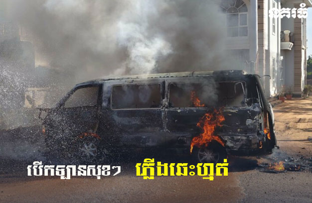ខេត្តកំពង់ចាម ៖ រថយន្តសាំងយ៉ុង ដឹកអ្នកដំណើរ ១គ្រឿង កំពុងបើកបរនៅលើដងផ្លូវសុខៗ ស្រាប់តែឆ្លងភ្លើង កើតជាអគ្គិភ័យ ឆាបឆេះយ៉ាងសន្ធោសន្ធៅ បណ្តាលឱ្យរខូចខាតអស់ទាំងស្រុង និងត្រូវបានកម្លាំងសមត្ថកិច្ចជំនាញ បញ្ជូនរថយន្តពន្លត់អគ្គិភ័យ ១គ្រឿង មកជួយអន្តរាគមន៍បាញ់ទឹកពន្លត់។