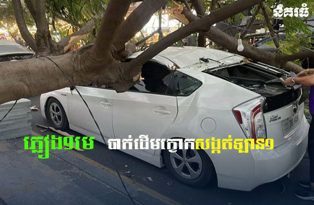 ភ្នំពេញ ៖ ភ្លៀងមួយមេ បានធ្លាក់គ្របដណ្តប់ស្ទើរទូទាំងរាជធានីភ្នំពេញ ស្របពេលនោះ មានខ្យល់កន្ត្រាក់ បោកបក់ធ្វើឱ្យរលំដើមក្ងោក ១ដើម សង្កត់រថយន្ត ១គ្រឿង ដែលម្ចាស់ចតឈប់ហាត់ប្រាណ បណ្តាលឱ្យខូចខាតធ្ងន់ តែសំណាងល្អ មិនបង្កឱ្យមនុស្សណាម្នាក់ រងគ្រោះថ្នាក់ឡើយ។