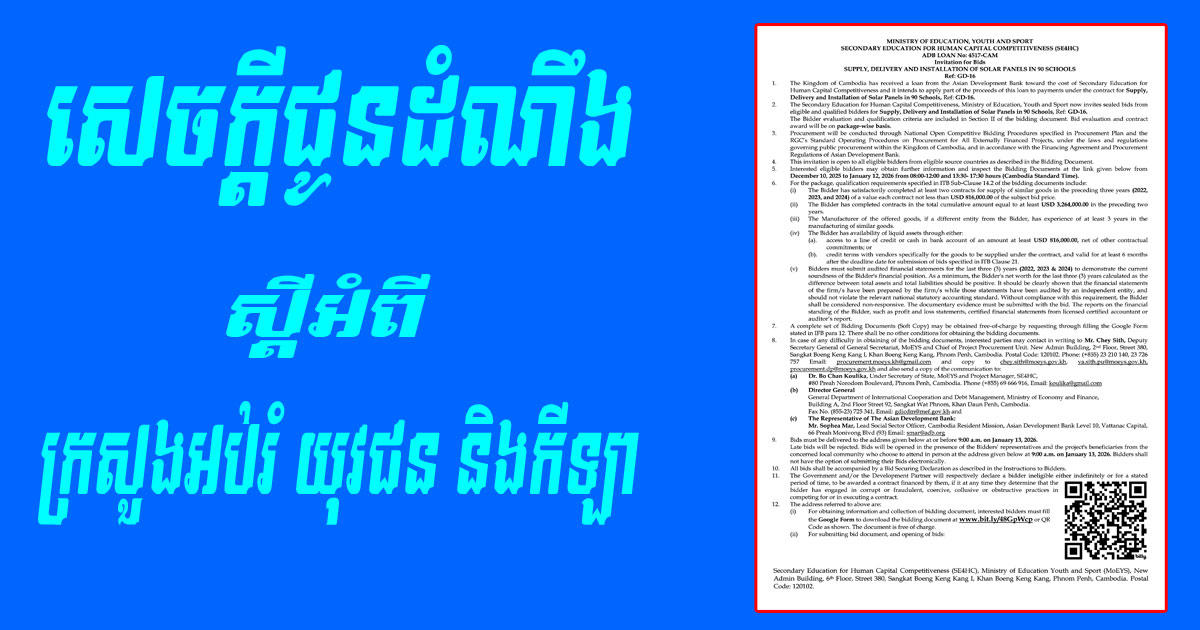 Homeព័ត៌មានជាតិសេចក្តីជូនដំណឹង ស្តីអំពី ក្រសួងអប់រំ យុវជន និងកីឡា ព័ត៌មានជាតិ សេចក្តីជូនដំណឹង ស្តីអំពី ក្រសួងអប់រំ យុវជន និងកីឡា By Davin December 11, 2025 0 0 Share FacebookTwitterPinterestWhatsApp RELATED ARTICLES ព័ត៌មានជាតិ សេចក្តីជូនដំណឹង ស្តីអំពី ក្រសួងអប់រំ យុវជន និងកីឡា February 9, 2026 ព័ត៌មានជាតិ សេចក្តីជូនដំណឹង ស្តីអំពី ក្រសួងអប់រំ យុវជន និងកីឡា February 9, 2026 ព័ត៌មានជាតិ ប្រាក់ខែយោធិន អ្នកវិភាគថា គួរធ្វើទំនើបកម្ម បើកផ្តល់តាមប្រព័ន្ធធនាគារ February 7, 2026