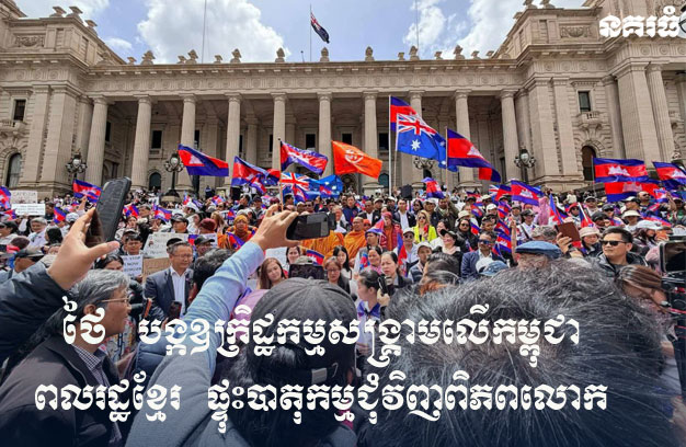 បាតុកម្មរបស់ពលរដ្ឋខ្មែរ នៅជុំវិញពិភពលោក បានផ្ទុះឡើងព្រមគ្នា នៅថ្ងៃអាទិត្យ ទី១៤ ខែធ្នូ ឆ្នាំ២០២៥ ដោយក្នុងនោះ ប្រជាពលរដ្ឋខ្មែរ រស់នៅប្រទេសអូស្ត្រាលី រាប់ពាន់នាក់ នៅព្រឹកថ្ងៃទី១៤ ខែធ្នូ បានមកជួបជុំគ្នានៅក្នុងទីក្រុងមែលប៊ន (Melbourne) សម្តែងការតវ៉ា នៅមុខរដ្ឋសភាអូស្ត្រាលី ដើម្បីបង្ហាញពីជំហរប្រឆាំងដាច់ខាតចំពោះទង្វើឈ្លានពានរបស់យោធាថៃម កលើបូរណភាពទឹកដីកម្ពុជា និងស្នើអូស្ត្រាលី អន្តរាគមន៍បញ្ឈប់អំពើឈ្លានពានដ៏កំរោលនិងសហាវឃោរឃៅរបស់ភាគីថៃ។