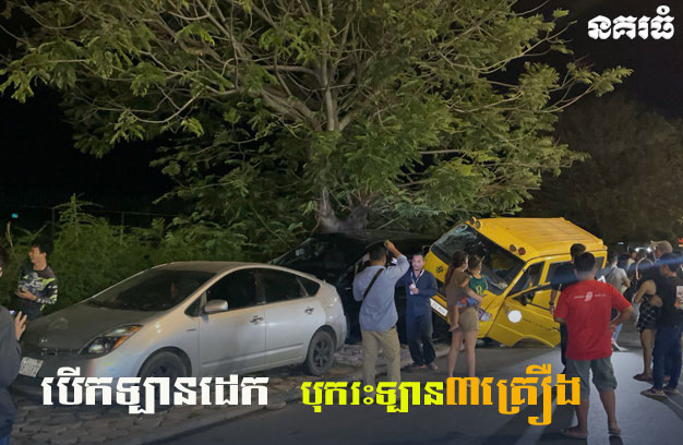ភ្នំពេញ ៖ បុរសម្នាក់ បើកបររថយន្តដឹកគ្រឿងសមុទ្រ ១គ្រឿង ងងុយដេក ងោក១ភាំង ធ្វើឱ្យរេចង្កូតបុករះរថយន្ត ៣គ្រឿង ដែលកំពុងចតលើចិញ្ចើមផ្លូវ បណ្តាលឱ្យរងការខូចខាតរថយន្តយ៉ាងធ្ងន់។