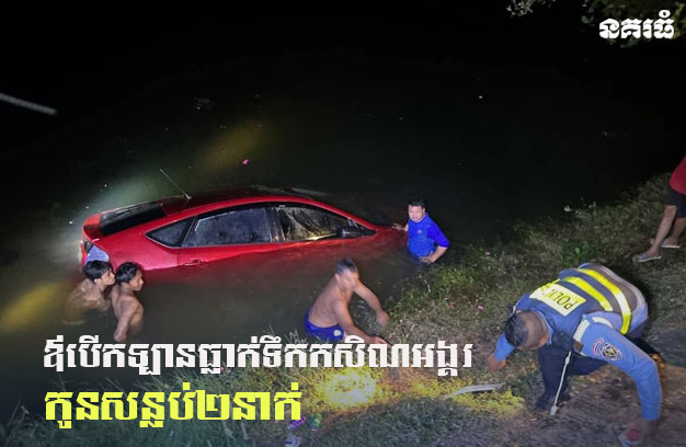 ឪបើកឡានធ្លាក់ទឹកកសិណអង្គរ កូនសន្លប់២នាក់