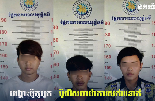 បង្ហោះម៉ូតូអួត ប៉ូលិសចាប់កោរសក់៣នាក់