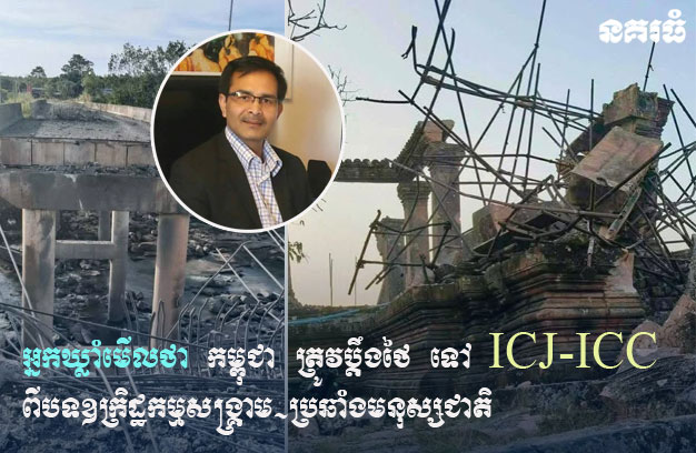 ភ្នំពេញ ៖ អ្នកឃ្លាំមើល បានលើកឡើងថា អ្វីដែលកម្ពុជា ត្រូវតែប្រញាប់ធ្វើនៅពេលនេះ ទាក់ទងនឹងសំណុំរឿងព្រំដែន គឺត្រូវប្ដឹងថៃ ទៅតុលាការយុត្តិធម៌អន្តរជាតិ (ICJ) និងតុលាការព្រហ្មទណ្ឌអន្តរជាតិ (ICC) ពីបទឧក្រិដ្ឋកម្មសង្រ្គាម និងឧក្រិដ្ឋកម្មប្រឆាំងនឹងមនុស្សជាតិ ។