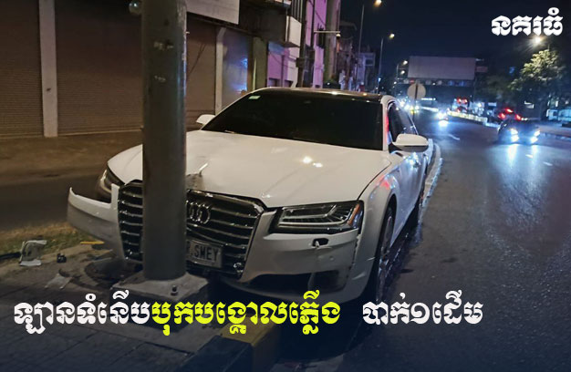 ភ្នំពេញ ៖ បុរសម្នាក់បើករថយន្តទំនើប ១គ្រឿង ក្នុងល្បឿនលឿន រួចរេចង្កូតឡើងខឿនផ្លូវ ហើយបន្តទៅបុកបង្គោលភ្លើងបំភ្លឺផ្លូវ ១ដើម បណ្តាលឱ្យខូចខាត ខណៈរថយន្តខូចខាតយ៉ាងដំណំ តែសំណាងល្អ មិនបង្កឱ្យមានគ្រោះថ្នាក់ដល់មនុស្សឡើយ។