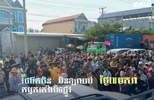 ខេត្តកំពង់ស្ពឺ ៖ កម្មករ-កម្មការិនីរោងចក្រផលិតស្បែកជើង យីហោ YJC ប្រមាណជាង ២ពាន់នាក់ បានប្រមូលផ្តុំគ្នាធ្វើការតវ៉ាបិទផ្លូវជាតិលេខ៣ បង្កឱ្យមានការកកស្ទះចរាចរណ៍ដល់អ្នកដំណើរឆ្លងកាត់ អស់ជាច្រើនម៉ោង ខណៈដែលមេការជនជាតិចិន ប្រមាថមើលងាយកម្មករ ដែលជាជនជាតិខ្មែរ និងមិនបើកប្រាក់បំណាច់ឆ្នាំជា ពិសេស ថ្ងៃបុណ្យជាតិ ៧មករា មិនអនុញ្ញាតឱ្យកម្មករឈប់សម្រាក។