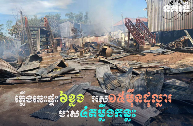 ភ្លើងឆេះផ្ទះ៦ខ្នង អស់១៥ម៉ឺនដុល្លារ មាស៤តម្លឹងកន្លះ