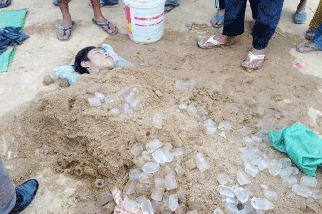 ​សង្គ្រោះបឋម​ព្រមទាំង​យកខ្សាច់​មកកប់​និងដាក់ទឹកកកពីលើរួច​ហើយ​បានផ្តល់​ដំណឹង​ទៅដល់​សមត្ថកិច្ច​និង​រថយន្ត​សង្គ្រោះ​អោយ​ដឹកជនរងគ្រោះយកទៅព្យាបាល​ ពេល​ដែល​រថយន្ត​សង្គ្រោះ​មកដល់​ជនរងគ្រោះ​បានដាច់ខ្យល់​ស្លាប់​បាត់​ទៅ​ហើយ​ ។