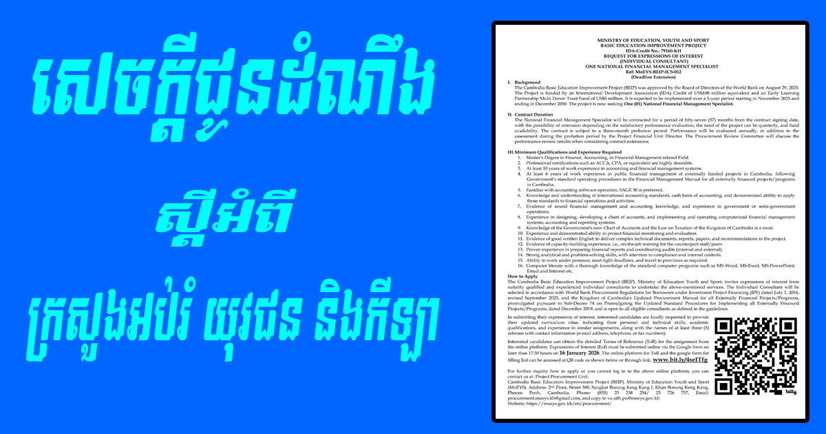 Homeព័ត៌មានជាតិសេចក្តីជូនដំណឹង ស្តីអំព ក្រសួងអប់រំ យុវជន និងកីឡា ព័ត៌មានជាតិព្រឹត្តិការណ៍សង្គម សេចក្តីជូនដំណឹង ស្តីអំព ក្រសួងអប់រំ យុវជន និងកីឡា By Davin January 10, 2026 0 0 Share FacebookTwitterPinterestWhatsApp RELATED ARTICLES ព័ត៌មានជាតិ សេចក្តីជូនដំណឹង ស្តីអំពី ក្រសួងអប់រំ យុវជន និងកីឡា February 9, 2026 ព័ត៌មានជាតិ សេចក្តីជូនដំណឹង ស្តីអំពី ក្រសួងអប់រំ យុវជន និងកីឡា February 9, 2026 ព័ត៌មានជាតិ ប្រាក់ខែយោធិន អ្នកវិភាគថា គួរធ្វើទំនើបកម្ម បើកផ្តល់តាមប្រព័ន្ធធនាគារ February 7, 2026
