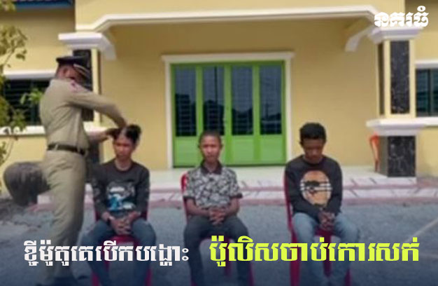 ខេត្តកំពង់ស្ពឺ ៖ យុវជន ៣នាក់ បានខ្ចីម៉ូតូ ១គ្រឿង ពីអ្នកស្គាល់គ្នា យកមកជិះ រួចនាំគ្នាធ្វើសកម្មភាពបង្ហោះយ៉ាងអនាធិបតេយ្យ ពេញដងផ្លូវ និងថែមទាំងបានថតបង្ហោះតាមបណ្តាញសង្គម ហ្វេសប៊ុក ថែមទៀត ទីបំផុតត្រូវបានកម្លាំងសមត្ថកិច្ចជំនាញ ស្រាវជ្រាវឃាត់ខ្លួនទាំង៣នាក់ យកមកធ្វើការអបរ់ណែនាំ ដោយកោរសក់ពុះជើងក្អែក ជាការព្រមាន។
