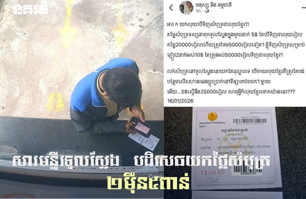 ខ្លឹមសាររបស់ម្ចាស់អាខោននេះ លើកឡើងថា “សំបុត្រ១ មានតម្លៃ ៥ដុល្លារ ប៉ុន្តែបើគិតជាលុយ ២ម៉ឺនហើយ ត្រូវថែម ៥ពាន់រៀលទៀត។ ហេតុនេះ ២សំបុត្រ ១០ដុល្លារ តែគិតជាលុយខ្មែរ គឺអស់ ៥ម៉ឺនរៀល”។