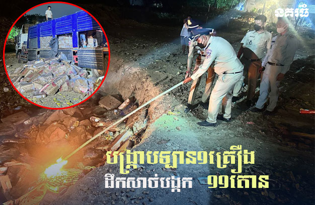 ភ្នំពេញ ៖ កម្លាំងការិយាល័យនគរបាលប្រឆាំងបទល្មើសសេដ្ឋកិច្ច សហការជាមួយអគ្គនាយកដ្ឋានការពារអ្នកប្រើប្រាស់ កិច្ចការប្រកួតប្រជែង និងបង្ក្រាបការក្លែងបន្លំ (ក.ប.ប) នៃក្រសួងពាណិជ្ជកម្រាជធានីភ្នំពេញ បានធ្វើការបង្ក្រាបសាច់ជ្រូក និងសាច់មាន់បង្កក ចំនួន១១,៥តោន ដែលគ្មានគុណភាពនិងសុវត្ថិភាព យកទៅដុតបំផ្លាញចោល។