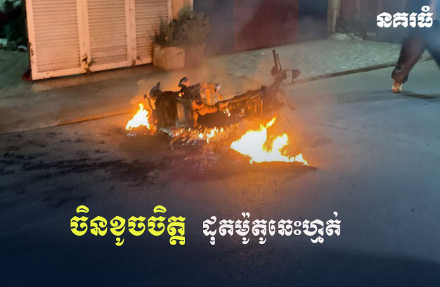 ភ្នំពេញ ៖ បុរសជាជនជាតិចិនម្នាក់ មិនថាមានបញ្ហាអ្វី ស្រាប់តែនៅសុខៗ ដុតម៉ូតូ ១គ្រឿងចោល បណ្តាលឱ្យឆាបឆេះយ៉ាងសន្ធោសន្ធៅ ខូចខាតអស់ទាំងស្រុង សល់តែគ្រោងឆ្អឹងដែក។