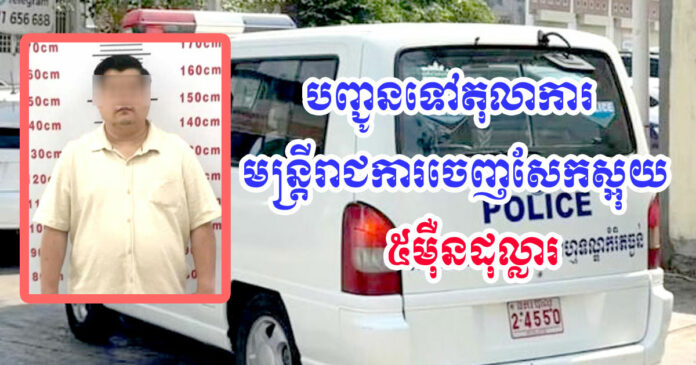 បញ្ជូន​ទៅ​តុលាការ មន្ត្រីរាជការ​ចេញ​សែក​ស្អុយ ៥ម៉ឺន​ដុល្លារ​