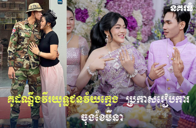 ខេត្តកំពង់ចាម ៖ គូដណ្ដឹងវីរយុទ្ធជនវ័យក្មេង ដែលល្បីល្បាញតាមបណ្តាញសង្គម​ ក្រោយពីបានភ្ជាប់ពាក្យក្នុងភ្លើងសង្គ្រាមនោះ បានប្រកាសរៀបការ នៅចុងខែមីនា ឆ្នាំ២០២៦ ខាងមុខនេះ ដោយនាងថែមទាំងបានផ្ញើសារទៅអនាគតស្វាមី ដែលកំពុងឈរជើងនៅសមរភូមិ ត្រៀមតទល់នឹងសត្រូវបរទេសឈ្លានពានថា នាងរង់ចាំប្រុសកំពូលស្នេហ៍វិលត្រលប់មកវិញ ដោយសុវត្ថិភាព ដើម្បីក្រាបសំពះផ្ទឹម ញញឹមទទួលផ្កាស្លាជាមួយគ្នាដូចបំណង តាមពេលាកំណត់ ។
