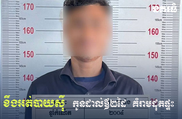 ខេត្តកណ្តាល ៖ យុវជនម្នាក់ តែងប្រើប្រាស់គ្រឿងញៀនជាប្រចាំ និងតែងបង្កការអុកឡុកប្រើអំពើហិង្សាក្នុងគ្រួសារជាបន្តបន្ទាប់ លុះចុងក្រោយ ទើបនឹងត្រឡប់មកពីជក់ថ្នាំញៀន បើកឆ្នាំង រកបាយហូប អត់មានបាយ ក៏ផ្ទុះកំហឹង បោកកម្ទេចឆ្នាំងចានចោលអស់ លុះឪពុកចេញ មកឃាត់ ស្រាប់តែកូនប្រុស ដាល់ឪពុកបង្កើត ចំនួន២ដៃ និងគំរាមដុតផ្ទះ សម្លាប់ឪពុកចោលទៀតផង ធ្វើឱ្យបុរសជាឪពុក មានការភ័យខ្លាច ក៏ប្តឹងសមត្ថកិច្ច ចាប់ វាយខ្នោះកូនប្រុសកំណាច យកទៅចាត់ការតាមច្បាប់។