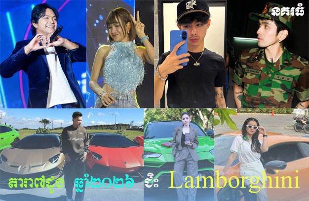 ភ្នំពេញ ៖ រថយន្ដទំនើប ម៉ាកឡាំបូរគីនី (Lamborghini) ដែលគេធ្លាប់តែឃើញតារាល្បីៗបរទេស និងកីឡាករបាល់ទាត់លំដាប់ពិភពលោក ជិះនោះ នៅឆ្នាំ២០២៦ មានតារាខ្មែរ ដល់ទៅ ៧ដួង បានជិះរថយន្ដ លំដាប់អភិជននេះ ។