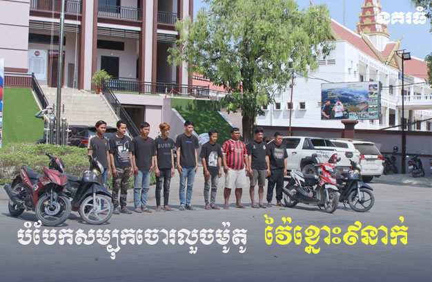 ខេត្តបន្ទាយមានជ័យៈ ជនសង្ស័យ ១ក្រុម ជាមុខសញ្ញាលួច សមគំនិតអំពើលួច ទទួលផលចោរកម្ម និងប្រើប្រាស់ដោយខុសច្បាប់នូវសារធាតុញៀន ត្រូវបានកម្លាំងសមត្ថកិច្ចជំនាញស្រាវជ្រាវបង្ក្រាបបានជាបន្តបន្ទាប់ សរុបចំនួន៩នាក់ នាំយកមកចាត់ការតាមច្បាប់។
