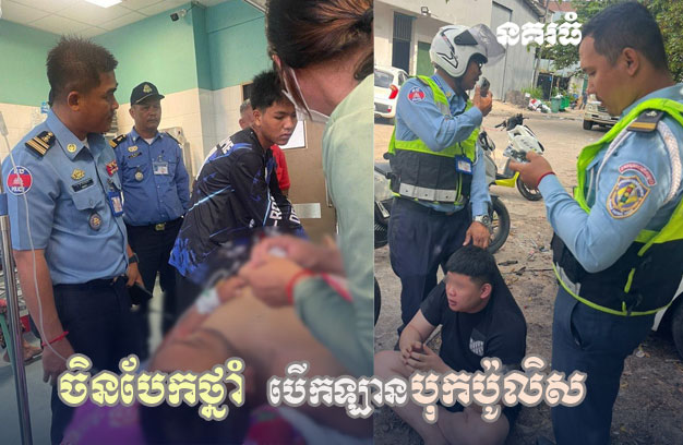 ខេត្តព្រះសីហនុ ៖ បុរសជាជនជាតិចិន ម្នាក់ ក្រោយពីប្រើប្រាស់ថ្នាំញៀន បែកថ្នាំ បើកបររថយន្តតាមដងផ្លូវ លុះដល់ចំណុចគោលដៅសមត្ថកិច្ចអនុវត្តភារកិច្ចរក្សាសណ្តាប់ធ្នាប់ចរាចរណ៍ ជ្រុលទៅបុកមន្ត្រីនគរបាលចរាចរណ៍ ១រូប បណ្តាលឱ្យរងរបួសធ្ងន់  ត្រូវបានបញ្ជូនទៅសង្គ្រោះភ្លាមៗ ។ ចំណែកអ្នកបើកបររថយន្តបង្កហេតុ បានព្យាយាមបើកគេច តែត្រូវកម្លាំងសមត្ថកិច្ចតាមចាប់ខ្លួនបានភ្លាមៗ។