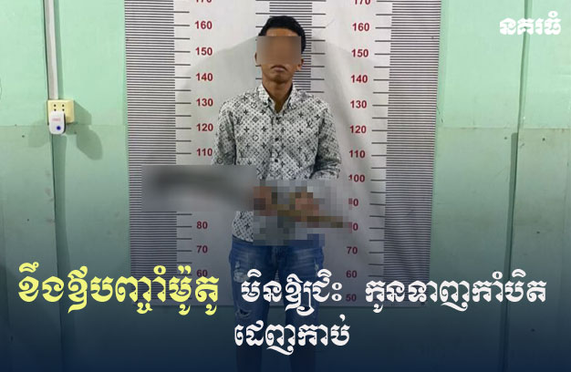 ខេត្តតាកែវ ៖ យុវជនម្នាក់ តែងប្រើប្រាស់ថ្នាំញៀន ជាប្រចាំ និងតែងជិះម៉ូតូដើរលេងប៉ោឡែ ជារៀងរាល់ថ្ងៃ ទើបឪពុកខ្លាចកូនប្រុសយកម៉ូតូទៅលក់ ឬបញ្ចាំ ទិញថ្នាំញៀនជក់ ក៏សម្រេចចិត្តយកម៉ូតូទៅដាក់បញ្ចាំ លុះកូនប្រុសរំអុកឱ្យឪពុកទៅលោះម៉ូតូមកវិញ មិនបានតាមបំណង ក៏ខឹងសម្បា ទាញកាំបិតដេញកាប់ឪពុក រត់ពេញភូមិ រហូតដល់បុរសជាឪពុកទ្រាំលែងបាន ក៏ប្តឹងសមត្ថកិច្ចចាប់វាយខ្នោះកូនប្រុសកំណាច យកទៅចាត់ការតាមច្បាប់។