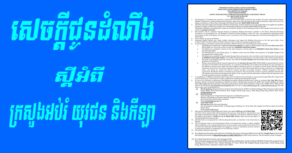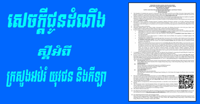 សេចក្តីជូនដំណឹង ស្តីអំពី ក្រសួងអប់រំ យុវជន និងកីឡា