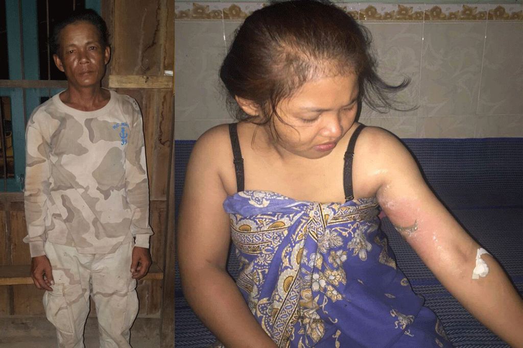 នារីរងគ្រោះបន្តថា លុះបន្តិចក្រោយមក ឪពុក ស្រាប់តែស្ទុះមកទាត់កំសៀវទឹកដែល នាងកំពុងដាក់ដាំទឹកនៅលើចង្ក្រាន និងកំពុង ពុះ បណ្តាលឱ្យសាចមកលើនាង ធ្វើឱ្យរងរបួស រលាកពេញមួយចំហៀកខ្លួនខាងឆ្វេង ពិសេស សាច់ដៃក្រោមក្លៀកខាងឆ្វេងតែម្តង ហើយនេះ សំណាងធំណាស់ ដែលនាងគេចផុតពុំនោះទេ ច្បាស់ជាងរលាកពេញមុខមាត់ច្បាស់ជាវីវរធំ មិនខាន។