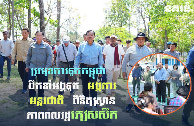 ខេត្តពោធិ៍សាត់ ៖ លោកឧបនាយករដ្ឋមន្ត្រី ប្រាក់ សុខុន រដ្ឋមន្ត្រីក្រសួងការបរទេស និងសហប្រតិបត្តិការអន្តរ ជាតិ នៅព្រឹកថ្ងៃទី២៧ ខែមីនា ឆ្នាំ២០២៦ បានដឹកនាំឯកអគ្គរាជទូត ឯកអគ្គរដ្ឋទូត តំណាងអង្គទូត ព្រមទាំងអង្គ ការអន្តរជាតិធំៗ ប្រចាំកម្ពុជា ចុះមកសួរសុខទុក្ខ និងពិនិត្យស្ថានភាពរស់នៅដោយផ្ទាល់ របស់ប្រជាពលរដ្ឋភៀសសឹក នៅឃុំថ្មដា ស្រុកវាលវែង ខេត្តពោធិ៍សាត់។