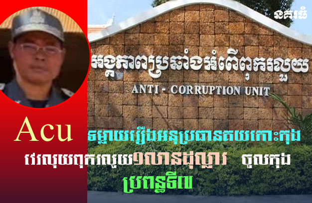 ខេត្តកោះកុង ៖ អង្គភាពប្រឆាំងអំពើពុករលួយ (ACU) នៅថ្ងៃទី២៩ ខែមីនា ឆ្នាំ២០២៦ បានប្រកាសបង្ហាញព័ត៌មានលម្អិត អំពី ប្រតិបត្តិការស្រាវជ្រាវរហូតឈានដល់ការចាប់ខ្លួន អនុប្រធានសាខាគយខេត្តកោះកុង និងបក្ខពួក។ ក្នុងលទ្ធផលស្រាវជ្រាវនោះ ACU បានរក ឃើញលុយពុករលួយជាង១លានដុល្លារ ក្នុងគណនី៤១ នៅធនាគារចំនួន៦ ដោយក្នុងនោះមានប្រើទាំងគណនីរបស់ប្អូនកូនប្រុសស្រី និងប្រពន្ធ ក្រៅច្បាប់ទី៧ របស់អនុ ប្រធានសាខាគយខេត្តកោះកុង ឈ្មោះម៉ៅ សាន់សូនា ផង។