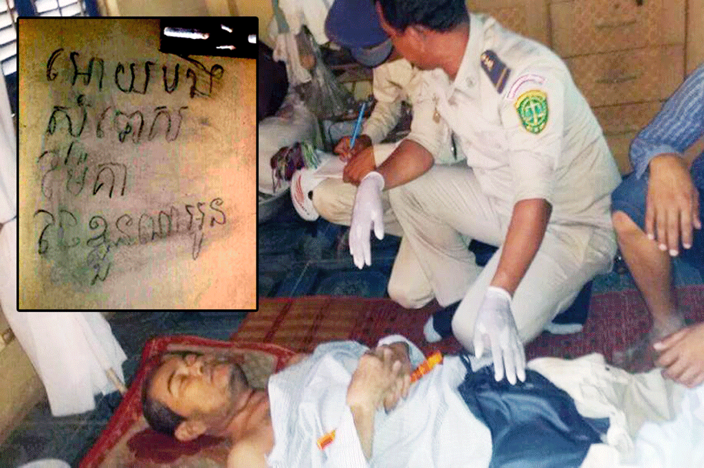 ប្រភពពីសមត្ថកិច្ចស្រុកកៀនស្វាយ បាន បញ្ជាក់ថា ក្រោយពីទទួលបានសេចក្តីរាយការណ៍ ថា មានករណីចងកធ្វើអត្តឃាត សមត្ថកិច្ចក៏ ចុះពិនិត្យដល់ទីតាំងកើតហេតុ និងបានប្រទះ ឃើញមានលិខិតមួយច្បាប់ ដែលជនរងគ្រោះ បានបន្សល់ទុកជូនប្រពន្ធរបស់ខ្លួន ដែលមាន ខ្លឹមឹសារថា “ឱ្យបងសុំទោសម៉ែគា ថែខ្លួនណា៎ អូន!”។ ចំណែកស្ត្រីជាប្រពន្ធ ក៏បានទទួលស្គាល់ ថា អក្សរនៅក្នុងសំបុត្រនេះ គឺពិតជាអក្សរ របស់ប្តីគាត់មែន។