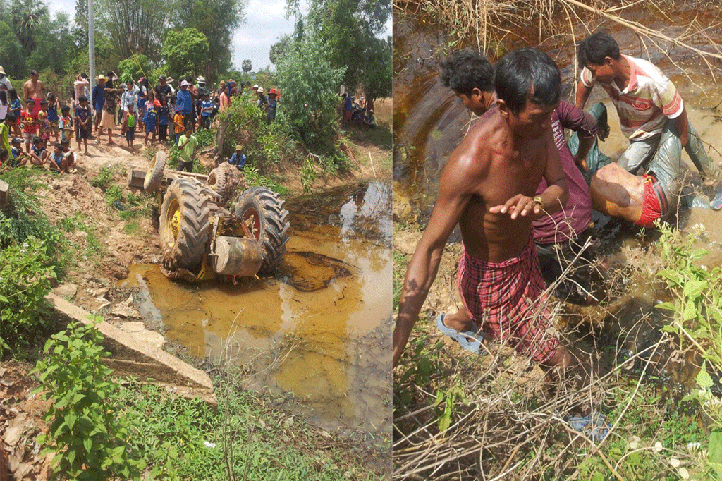 បើក​ត្រាក់​ទ័រថយ​ក្រោយ​ធ្លាក់​ប្រឡាយ ក្រឡាប់​សង្កត់​ស្លាប់