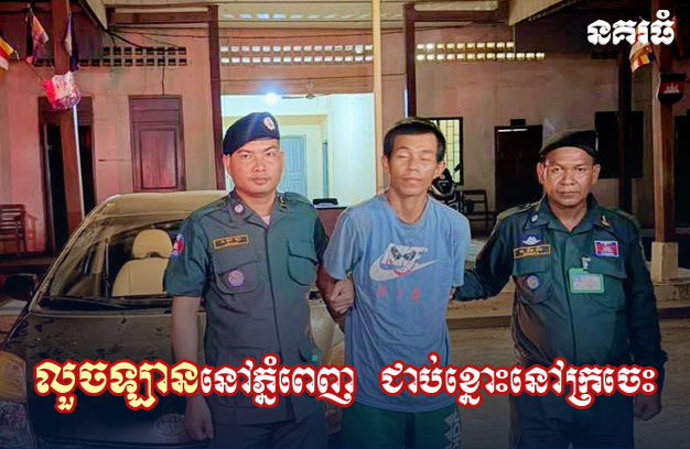 ភ្នំពេញ ៖ ជនសង្ស័យម្នាក់ បានធ្វើសកម្មភាពលួចរថយន្ត ១គ្រឿងបានសម្រេច រួចបើកគេចខ្លួនចេញពីរាជធានីភ្នំពេញ អស់រយៈពេលជិត ១សប្តាហ៍ ត្រូវបានសមត្ថកិច្ចជំនាញសហការស្រាវជ្រាវឃាត់ខ្លួនបាន នៅក្នុងភូមិ សាស្ត្រស្រុកឆ្លូង ខេត្តក្រចេះ។