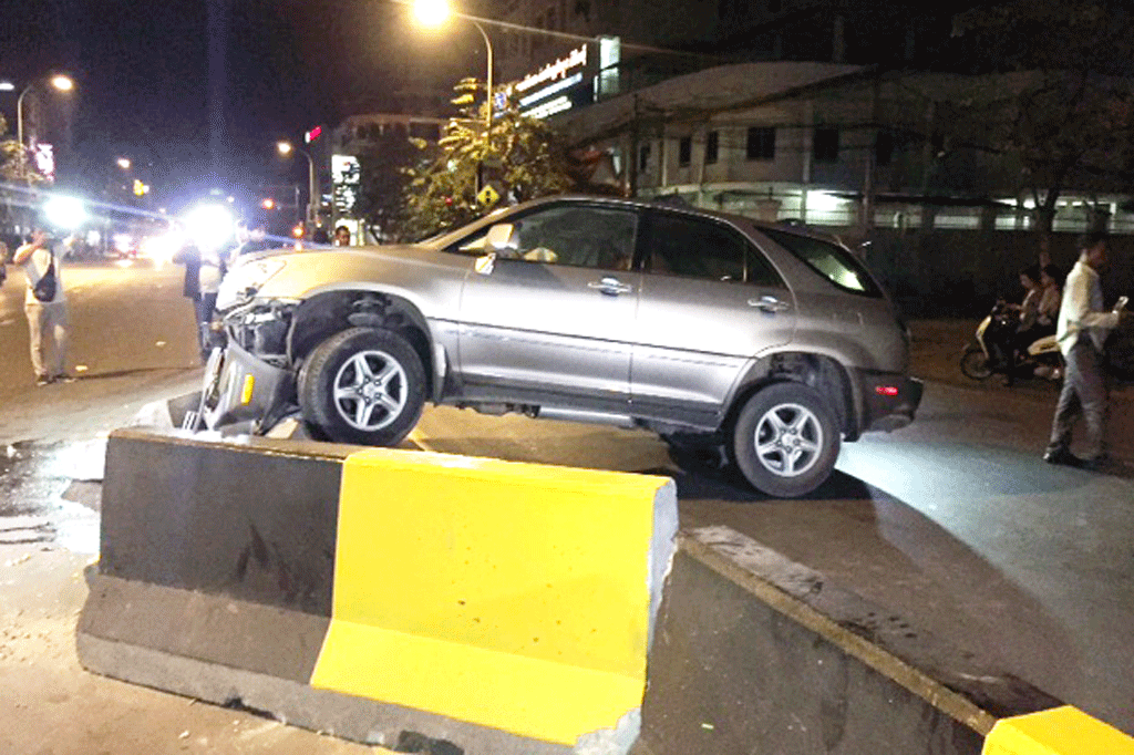 ភ្នំពេញ ៖ បុរសម្នាក់ បើករថយន្តដឹកស្រីស្នេហ៍បើកក្នុងល្បឿនយ៉ាងលឿនដូចហោះ ហើយរវល់តែ ប្រឡែងជាមួយស្រីស្នេហ៍រេចង្កូតរថយន្តទៅបុកក្បាលនាគពុះចែកទ្រូង ផ្លូវបណ្តាលអោយបាក់អស់៣កង់ កាលពីវេលាម៉ោង២និង៣០នាទីរំអាធាត្រឈានចូល ថ្ងៃទី២៩ខែមីនាឆ្នាំ២០១៧តាមបណ្តោយផ្លូវព្រះមុនីវង្សនៅចំណុចជិតស្តុប៣១០ស្ថិតនៅក្នុងសង្កាត់បឹងកេងកង១ ខណ្ឌចំការមន។