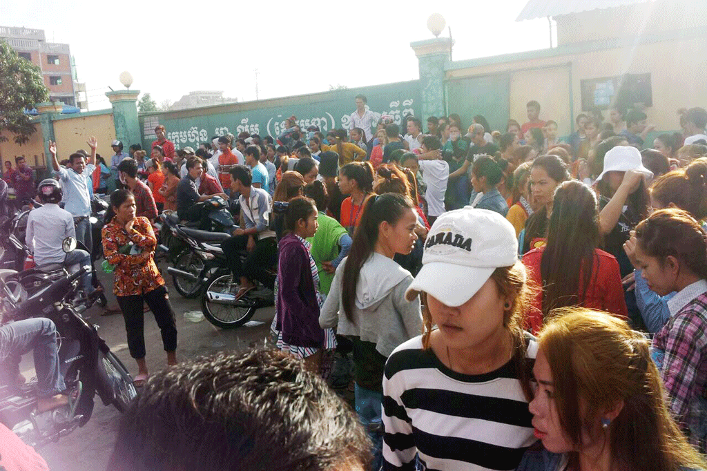 ភ្នំពេញ ៖ កម្មកររោងវក្រកាត់ដេរសម្លៀកបំពាក់ចំនួន៩០នាក់ បម្រើការងារក្នុងរោងចក្រអាលីម ដែលមានទីតាំងស្ថិតនៅ ក្នុងភូមិត្រពាំងថ្លឹង សង្កាត់ចោមចៅ ខណ្ឌពោធិសែនជ័យ បន្ទាប់ពីថៅកែក្រុមហ៊ុនមិនបានបើកប្រាក់ឈ្នួលឲ្យ ពេញ១ខែស្រាប់តែនៅព្រឹកថ្ងៃទី៣១ ខែមិនា ឆ្នាំ២០១៧ ប្រមូលផ្តុំគ្នាធ្វើកូដកម្មរកប្រាក់ឈ្នួល ។