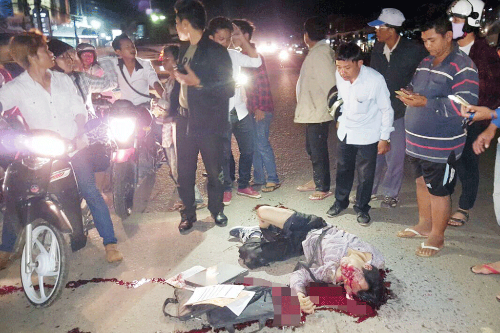 បុរសម្នាក់ត្រូវរថយន្តបុកនិងកិនអូសតាមរថយន្តប្រមាណមួយគីឡូម៉ែត្រស្លាប់ភ្លាមៗយ៉ាងអណោចអធមនៅនឹងកន្លែង ប្រពន្ធរងរបួសយ៉ាងដំណំ ចំណែកបុរសផ្សេងម្នាក់ទៀតរងរបួសធ្ងន់ ក្នុងហេតុការណ៍គ្រោះថ្នាក់ចរាចរណ៍បង្កឡើងដោយរថយន្តបុករះម៉ូតូ២គ្រឿង កាលពីម៉ោង៩និង៣០នាទីយប់ថ្ងៃទី០១ ខែមេសា នៅចំណុចខាងលិចមន្ទីរពេទ្យចោមចៅលើកំណាត់ផ្លូវជាតិលេខ០៤ ភូមិព្រៃព្រីងខាងជើង សង្កាត់ចោមចៅ ខណ្ឌពោធិ៍សែនជ័យ។