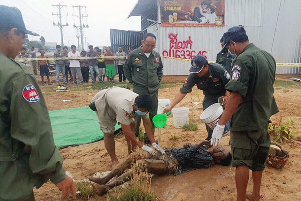សពជនរងគ្រោះដែលត្រូវគេវាយសម្លាប់ ក្នុងទឹកថ្លុកក្បែរផ្លូវជាតិយ៉ាងអាណោចអាធ័ម មានឈ្មោះឡុង សារឿន អាយុ៤៦ឆ្នាំ មាន លំនៅក្នុងភូមិឈើទាលភ្លោះ ឃុំព្រៃអំពក ស្រុក គីរីវង់ ខេត្តតាកែវ។ ចំណែកជនសង្ស័យជា ឃាតករមិនទាន់ត្រូវបានស្គាល់អត្តសញ្ញាណ នៅឡើយ។