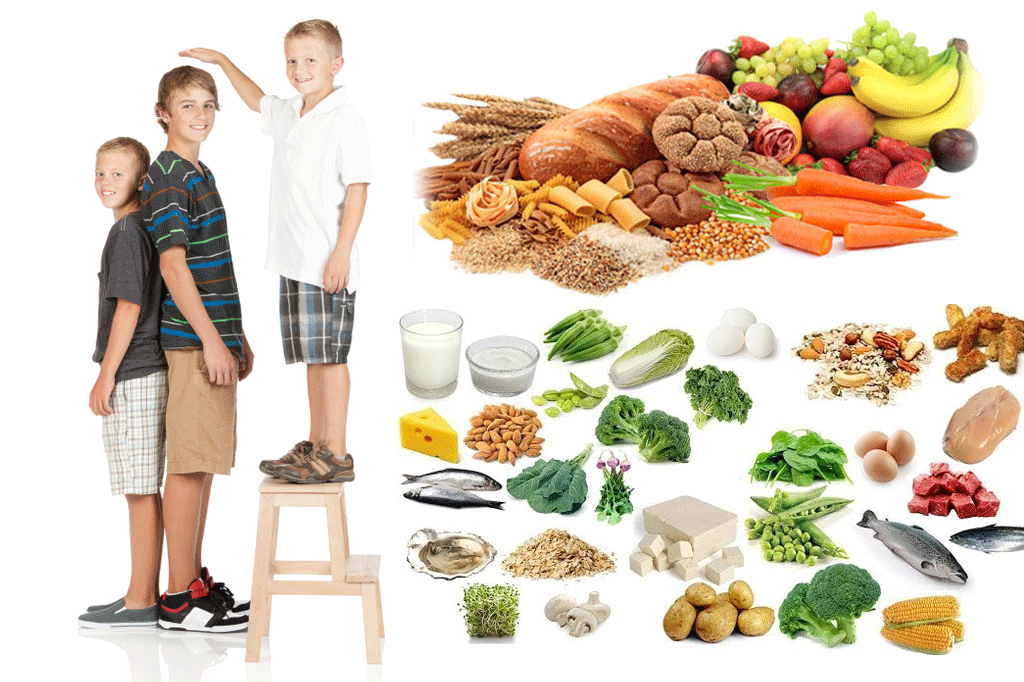 -គ្រាប់ធញ្ញជាតិ និងសាច់សត្វ ៖ ដូចជា សណ្តែកប្រភេទផ្សេងៗ រួមទាំងសាច់សត្វគ្រប់ប្រភេទមានប្រូតេអ៊ីនខ្ពស់ ជួយផលិតឆ្អឹង និង ពន្លូតកម្ពស់បាន។