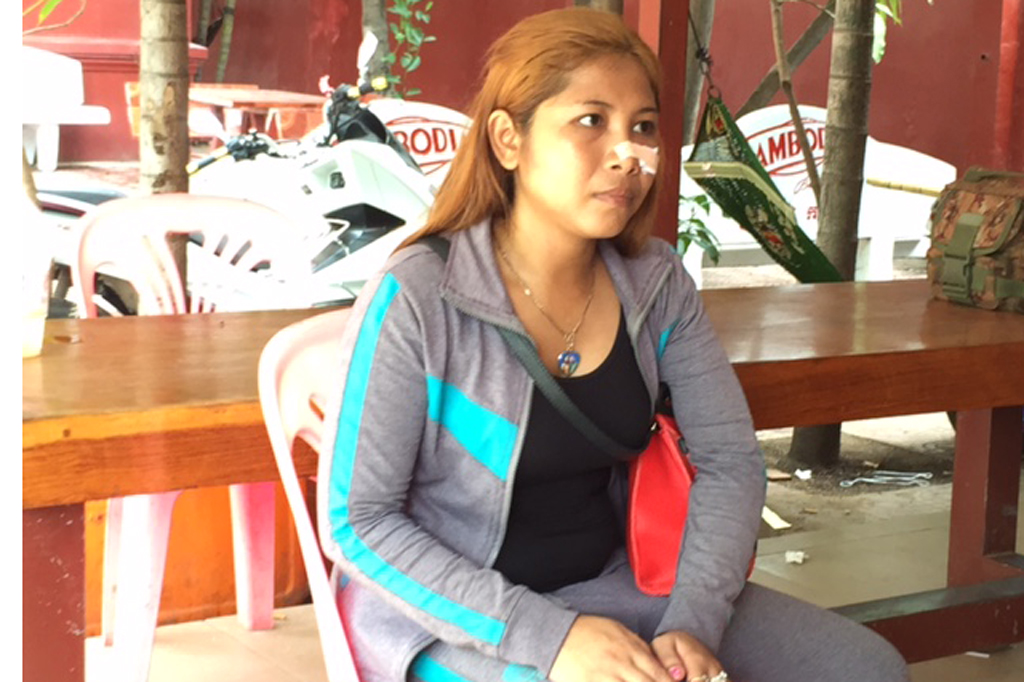ស្ត្រីរងគ្រោះ បានបញ្ជាក់ថា នៅមុនពេល កើតហេតុ កាលពីវេលាម៉ោង៩និង៣០នាទី យប់ ថ្ងៃទី១៦ ខែកក្កដា ឆ្នាំ២០១៦ ក្រោយពី រើអីវ៉ាន់បិទតូបលក់ដូររួច ប្តីប្រពន្ធនាងក៏នាំ គ្នាត្រឡប់មកផ្ទះវិញ ស្រាប់តែពេលមកដល់ ផ្ទះហើយ ប្តីនាងក៏ចេញទៅផឹកស៊ីជាមួយមិត្តភក្តិនៅក្នុងផ្សារកាណាឌីយ៉ាបាត់។ លុះដល់យប់ ជ្រៅណាស់ទៅហើយ មិនឃើញប្តីវិលត្រឡប់ ចូលផ្ទះ ធ្វើឱ្យនាងមានការបារម្ភពីប្តី ទើបនាង ជាប្រពន្ធបានដើរទៅតាមហៅប្តីដល់វង់ផឹក ប៉ុន្តែហៅមួយម៉ាត់ពីរម៉ាត់ប្តីមិនព្រមងើប ក៏ កើតមានទំនាស់ពាក្យសម្តីជាមួយគ្នា ដោយប្តី បានស្រែកដាក់នាងថា “អញជាប់រវល់ផឹកស៊ី កុំចេះដឹង!” លុះនិយាយ មិនទាន់រួចផុតពីមាត់ ផង ស្រាប់តែប្តីចិត្តកំណាចរបស់នាង បានទាញ កំប៉ុងស្រាបៀរ ដែលមានទឹកពេញគប់ចំមុខនាង បណ្តាលឱ្យបាក់ក្តោងច្រមុះ ហូរឈាមស្រោច ខ្លួនតែម្តង។