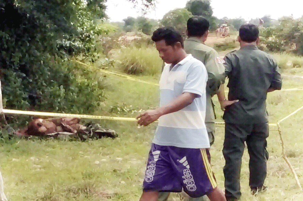 ខេត្តពោធិ៍សាត់ ៖ បុរសមិនស្គាល់អត្តសញ្ញាណម្នាក់ ត្រូវបានឃាតករដៃឆៅកាប់រហូត ដល់ស្លាប់ និងញាត់សពចូលក្នុងបាវ រួចដឹកយក ទៅប្លុងចោលនៅក្នុងព្រៃ រហូតដល់សពមាន សភាពស្អុយរលួយជះក្លិន ទើបត្រូវបានប្រជាពលរដ្ឋប្រទះឃើញ បង្កឱ្យមានការភ្ញាក់ផ្អើល ឡើង កាលពីវេលាម៉ោង១១និង៤០នាទីព្រឹក ថ្ងៃទី១៨ ខែមេសា ឆ្នាំ២០១៧ ត្រង់ចំណុច ព្រៃរបោះមួយកន្លែង នៅចម្ងាយពីផ្លូវជាតិលេខ ៥ ប្រមាណ៣គីឡូម៉ែត្រ ស្ថិតក្នុងភូមិព្រៃដំរី ឃុំបឹងខ្នា ស្រុកបាកាន។