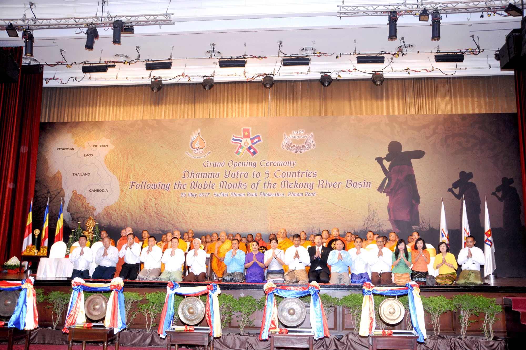 នៅព្រឹកថ្ងៃទី២៦ ឧសភា នេះ នៅសណ្ឋាគារសូហ្វីតែល មានព្រះសង្ឃជាច្រើនអង្គបានចូលរួម កម្មវិធីធម្មយាត្រា៥ប្រទេស តាមគន្លងព្រះអរិយសង្ឃនៃអនុតំបន់មហាទន្លេមេគង្គ ក្រោមអធិបតីភាពសម្តេចព្រះសង្ឃរាជទេព វង្ស ឯកឧត្តមហោ ណាំហុង អតីតរដ្ឋមន្ត្រីក្រសួងការបរទេស ឯកឧត្តមហ៊ុន ម៉ានី តំណាងរាស្ត្រខេត្តកំពង់ស្ពឺ និងជាប្រធានសហព័ន្ធយុវជនកម្ពុជា រួមទាំង លោក Supachai Verrapuchong នាយកប៉ុស្តិ៍លេខ៥ និងជាម្ចាស់សណ្ឋាគាសូហ្វីតែល និងបណ្តាស្ថាតទូត និងអ្នកតំណាងសាសនាជាច្រើនទៀតបានចូលរួមយ៉ាងច្រើនកុះករផងដែរ។