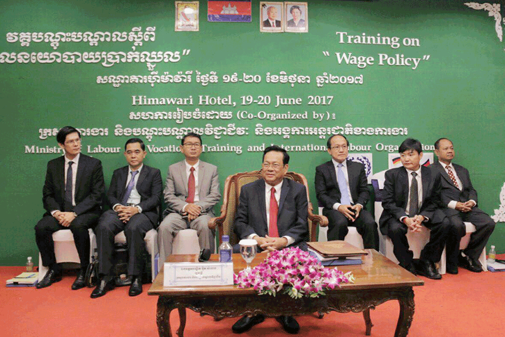 ថ្លែងនៅក្នុងពិធីបើកវគ្គបណ្តុះបណ្តាលស្តីពី “គោលនយោបាយប្រាក់ឈ្នួល” នៅសណ្ឋាគារ ហ៊ីម៉ាវ៉ារី កាលពីថ្ងៃទី១៩ ខែមិថុនា ឆ្នាំ២០១៧ ដែលមានការចូលរួមពីភាគីរាជរដ្ឋាភិបាល ភាគីសមាគមនិយោជក ភាគីសហជីពកម្មករ និងអង្គការអន្តរជាតិខាងការងារ (ILO) លោក អ៊ិត សំហេង រដ្ឋមន្ត្រីក្រសួងការងារ និងបណ្តុះបណ្តាលវិជ្ជាជីវៈ បានបញ្ជាក់ថា ការដែលរាជរដ្ឋាភិបាលកម្ពុជា បានដាក់ចេញគោលនយោបាយជាតិ ក៏ដូចជាគោលនយោបាយប្រាក់ឈ្នួលនេះ គឺសុទ្ធតែដើម្បីបង្កើនជីវភាព និងផលប្រយោជន៍របស់កម្មករ និយោជិត មិនមែនដើម្បី គាបសង្កត់កម្មករ ដូចការលើកឡើងរបស់ជនមួយចំនួននោះទេ។ ដូច្នេះលោកសង្ឃឹមថា ជិតដល់ឆ្នាំបោះឆ្នោតកុំយកប្រធានបទប្រាក់ឈ្នួលនេះ ក្លាយទៅជាបញ្ហាដែលបង្កើតឱ្យមានការច្របូកច្របល់មិនចាំបាច់ ព្រោះរឿងនេះ គឺសំដៅទៅលើបញ្ហាការដោះស្រាយជីវភាពនិងផលប្រយោជន៍របស់កម្មករជាជាងយកទៅធ្វើនយោបាយ ។