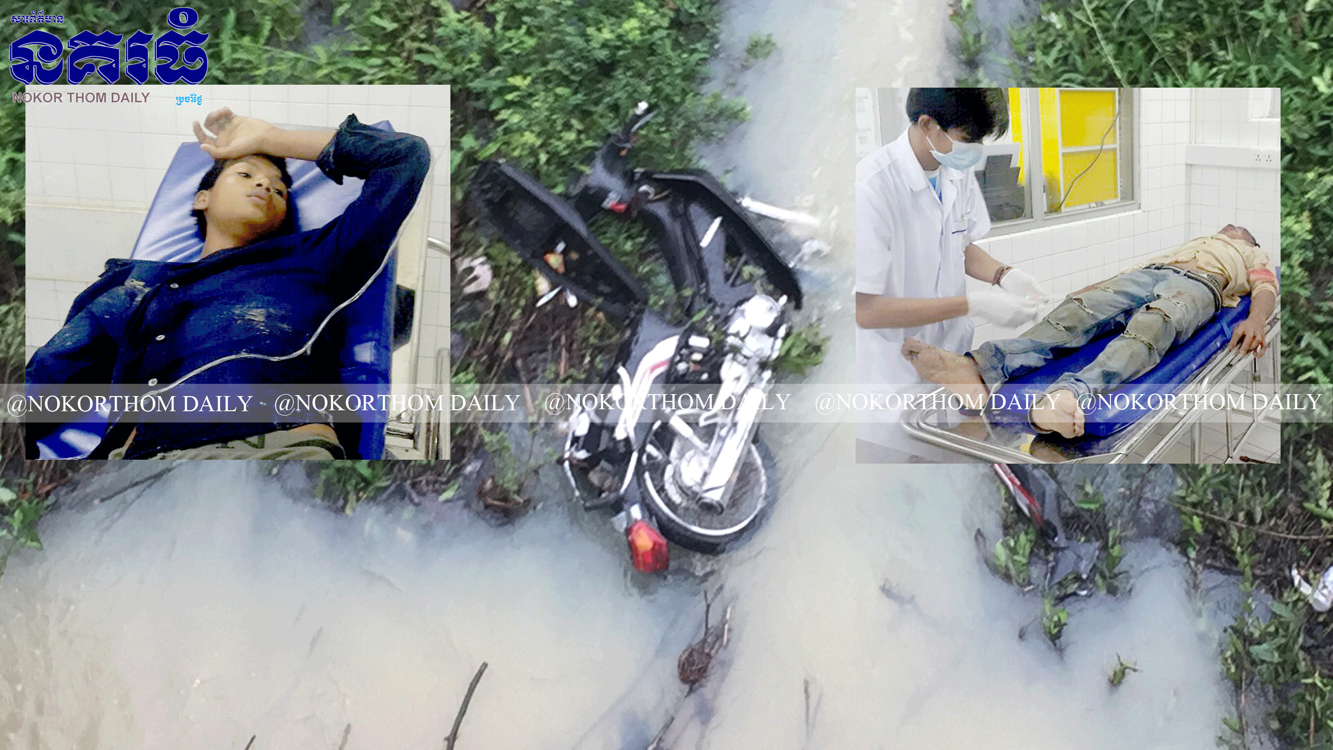 តាមសាក្សីពីកន្លែងកើតហេតុបានឲ្យដឹងថា មុនដំបូងគេបានឃើញបុរស៣នាក់ជិះ ម៉ូតូជនរងគ្រោះជិះម៉ូតូម៉ាកហុងដាឌ្រីម សេរី២០១៣ ពណ៍ខ្មៅ ក្នុងទិសដៅពីត្បូងទៅជើង ខណៈមកដល់ចំណុចកើតហេតុ ជាកន្លែងងងឹតផងនោះ បានរេចង្កូតទៅបុកគំនរសំបកដូង ធ្វើឲ្យរអិលចូលទឹកស្ទឹងស្ពាន៧មករា ទាំងម៉ូតូទាំងមនុស្សបាត់ខ្លួនអស់ម្នាក់ រកមិនទាន់ឃើញ រងរបួសធ្ងន់ម្នាក់ និងរបួសស្រាលម្នាក់ ចំណែកម៉ូតូនៅក្នុងទឹកមិនទាន់ស្រង់ចេញនៅឡើយទេ ដោយសមត្ថកិច្ចនៅយាមរង់ចាំព្រឹក ទើបស្រង់ចេញពីក្នុងទឹក ។