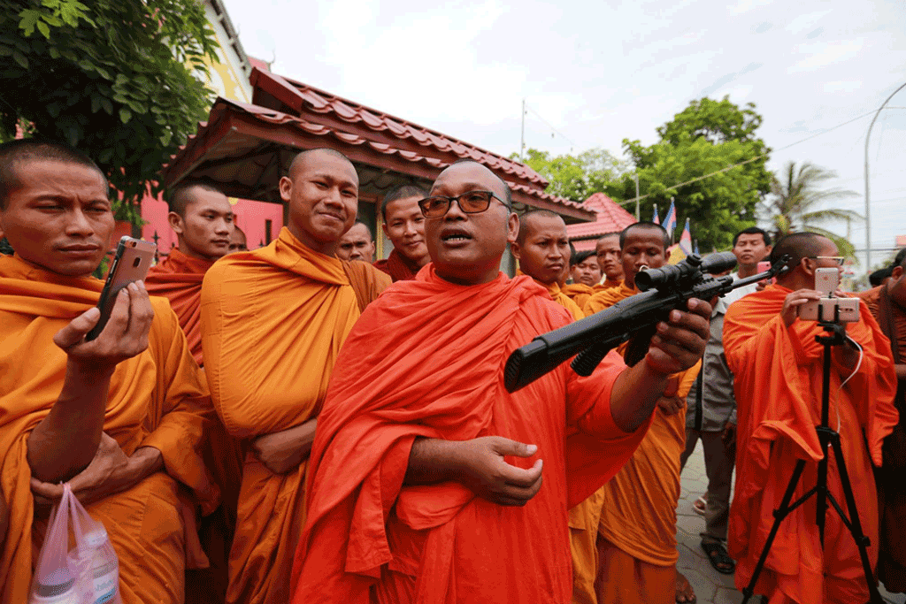 តាមទំព័រហ្វេសប៊ុកអគ្គស្នងការដ្ឋាននគរបាលជាតិ នៅថ្ងៃទី២១ ខែមិថុនា ឆ្នាំ២០១៧ បានបញ្ជាក់ថា មួយរយៈកន្លងមកនេះ មានគណនីហ្វេសប៊ុកព្រះសង្ឃមួយ បានធ្វើការបង្ហោះនូវរូបភាព ដែលហាក់បីដូចជាមិនមែនខ្លួនជាព្រះសង្ឃ ដោយសារតែរូបភាពទី១ គឺរូបលោកផ្ទាល់ មានកាន់ដាវសាមូរ៉ៃ ដែលមើលទៅហាក់ដូចជា សង្ឃនៅវត្តសាវលីញ ប្រទេសចិន រីឯរូបដែលបង្ហោះនាពេលថ្មីៗនេះ គឺរូបលោកបានក្រាបកាន់កាំភ្លើងយន្ត ដែលមិនខុសអីពីរូបខ្មាន់កាំភ្លើង ISIS ឡើយ ដែលរូបទាំងនេះ បានបង្ហោះក្នុងអំឡុងថ្ងៃទី១២ ដល់ថ្ងៃទី១៤ ខែមេសា កន្លងទៅនេះ នៅក្នុងវត្តដំរីសផង និងក្នុងវត្តខ្នាចរមាស នៃស្រុកបវេល ផងដែរ។ ដោយសង្កេតឃើញថា រូបភាពទាំងនេះ អាចមានការពាក់ព័ន្ធ នឹងបទធ្វើឱ្យប៉ះពាល់ដល់ព្រះពុទ្ធសាសនា និងកាន់កាប់រក្សាទុកអាវុធខុសច្បាប់ ទើបតុលាការ បានធ្វើការស្រាវជ្រាវ ព្រមទាំងបានរកឃើញ ទីតាំងដែលព្រះសង្ឃអង្គនេះគង់ នាពេលបច្ចុប្បន្ន ដោយបានចេញជាដីកាបញ្ជាឱ្យចូលខ្លួន លេខ៩៥៨ ចុះថ្ងៃទី២១ ខែមិថុនា ឆ្នាំ២០១៧ ដោយលោកគឺ ប៊ុណ្ណារ៉ា តំណាងអយ្យកាសាលាដំបូងខេត្ត។