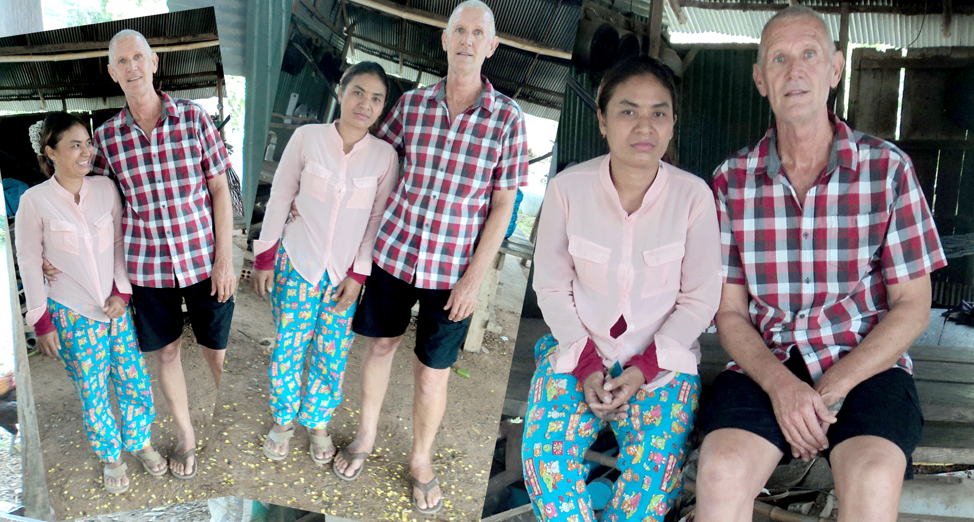 ដោយឡែក លោកប៉េ ប៊ីត អាយុ៦៣ឆ្នាំ ជាប្តី បានប្រាប់អ្នកយកព័ត៌មានយើងជាភាសាអង់គ្លេស យ៉ាងខ្លីមានសេចក្តីជាភាសាខ្មែរថា គាត់ធ្លាប់មានប្រពន្ធអូស្ត្រាលី រញ៉ាំរញ៉ូវណាស់ លុះមកប៉ះប្រពន្ធខ្មែរ នៅក្មេងជាងគាត់ដូចឪពុក និងកូនបែបនេះ គាត់ជាប់ស្នេហ៍ទៅណាចោលនាងមិនរួចទេ ច្បាស់ជាផ្ញើឆ្អឹងជាមួយប្រពន្ធនេះហើយ។