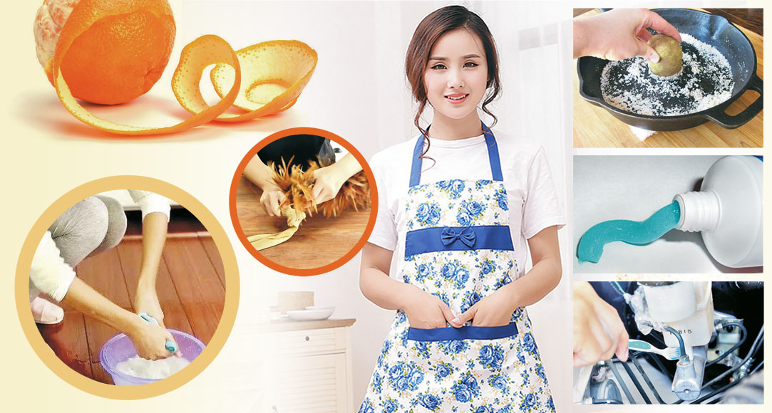 ៦-សម្បកក្រូចកម្ចាត់ស្នាមខ្លាញ់ ៖ យកសម្បកក្រូចទៅដាក់ក្នុងចង្ក្រានម៉ៃក្រូវេវ បើកកម្តៅទាប ទុកចោលប្រមាណ៦០វិនាទី ហើយដុសសម្អាតវានៅផ្នែកខាងក្នុងចង្ក្រានម៉ៃក្រូវេវម្តងទៀតជាការស្រេច។