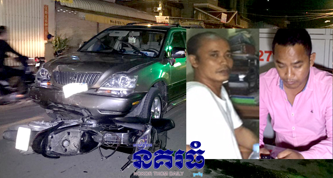 ភ្នំពេញ ៖ មន្រ្តីអាវុធហត្ថខណ្ឌចំការមន បើករថយន្តបុកម៉ូតូរងរបួសធ្ងន់២នាក់ និងស្រាលម្នាក់ បែរជាបុរស២នាក់ ជិះម៉ូតូមួយគ្រឿង ក្នុងស្ថានភាពស្រវឹងមកដល់ បានស្រែកថាចោរៗ ត្រូវសមត្ថកិច្ចឃាត់ខ្លួនយកទៅសួរនាំ បង្កឲ្យមានការភ្ញាក់ផ្អើលកាលពីវេលាម៉ោង១១និង២០នាទីយប់ ថ្ងៃទី០២ ខែកក្កដា ឆ្នាំ ២០១៧ នៅចំណុចផ្លូវ៤៨៤ កែងផ្លូវ៩៩ ស្ថិតនៅភូមិ៤ សង្កាត់ផ្សារដើមថ្កូវ ខណ្ឌចំការមន ។